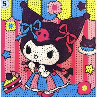 با تابلو نقاشی الماسی Kuromi، دنیای رنگی و درخشان سنریو را به خانهات بیار! این تابلو الماسی فانتزی دخترانه با