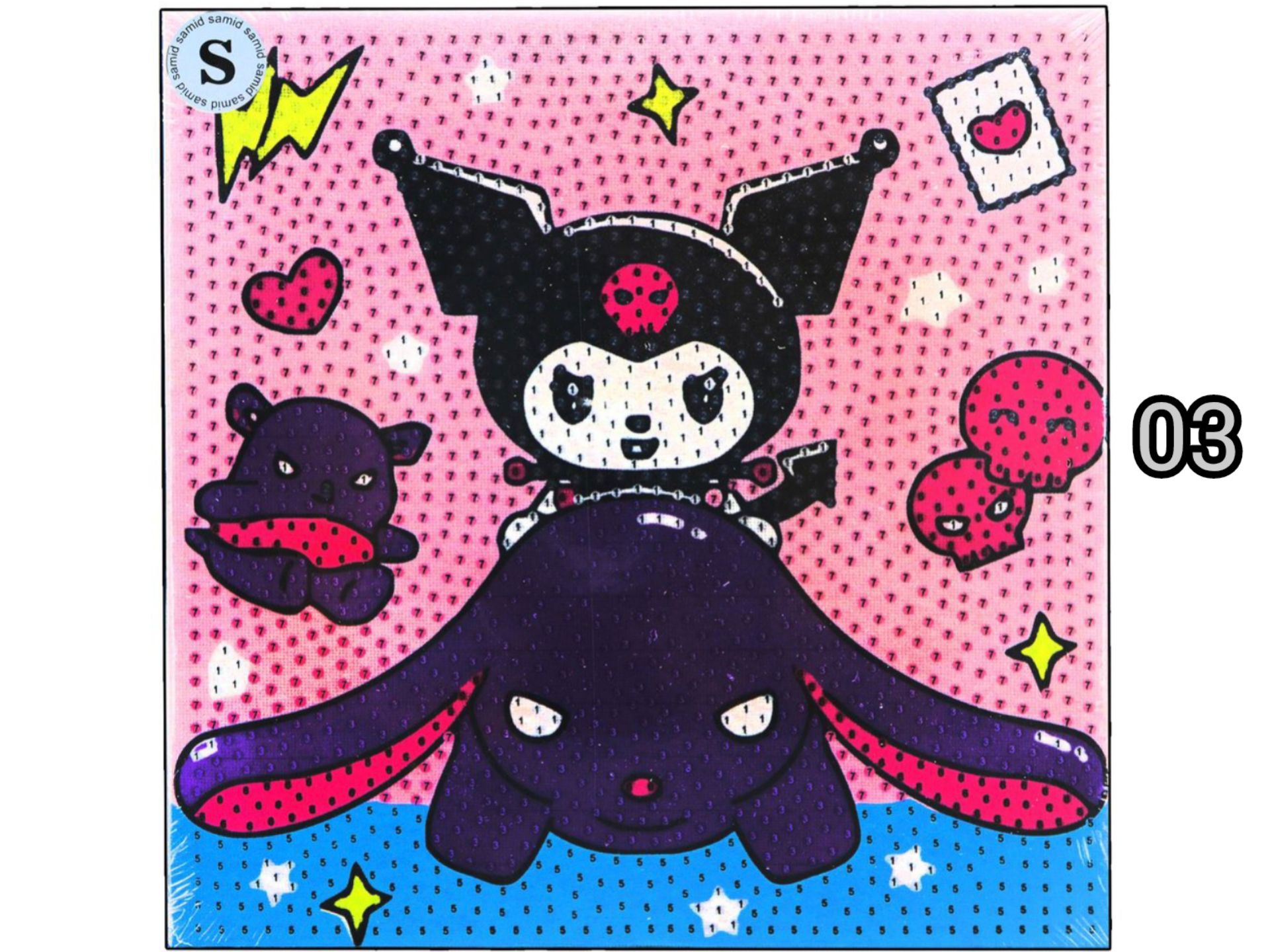 با تابلو نقاشی الماسی Kuromi، دنیای رنگی و درخشان سنریو را به خانه‌ات بیار! این تابلو الماسی فانتزی دخترانه با طرح خاص شخصیت کورومی (Kuromi)، به دکور اتاقت حس شادابی و انرژی مثبت می‌دهد. اگر به دنبال هدیه‌ای خاص و هنری هستی، این تابلو دقیقاً همان چیزی است که می‌خواهی 💜