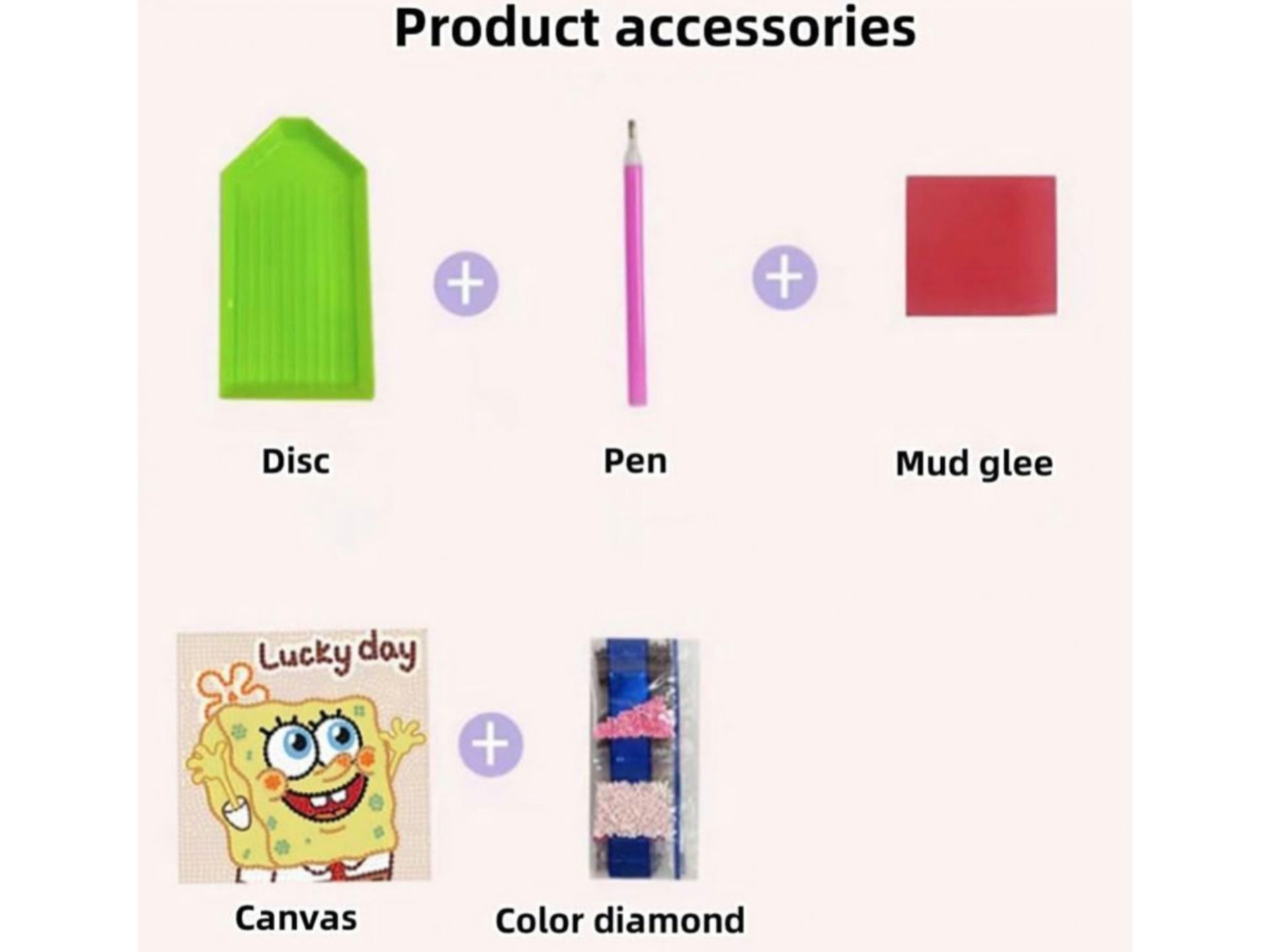 تابلو نقاشی الماسی + قلم + صفحه پلاستیکی نگهدارنده الماس + چسب مخصوص + الماس های رنگی
