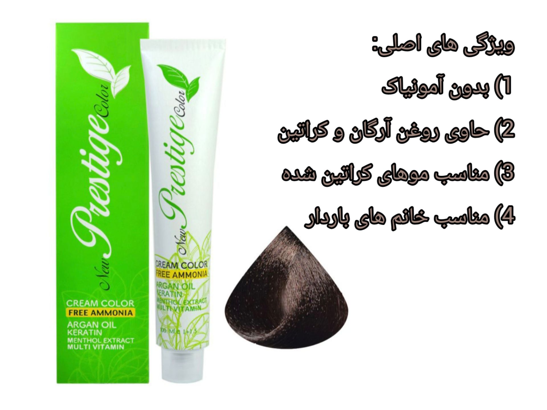 رنگ مو پرستیژ بدون آمونیاک یک گزینه ملایم و کم ضرر برای رنگ کردن مو است که فاقد آمونیاک می باشد. این رنگ مو با حفظ سلامت موها، باعث آسیب کمتر و ایجاد بوی کمتر ناخوشایند هنگام استفاده می شود،همچنین، رنگ پرستیژ بدون آمونیاک جلوه ای طبیعی و درخشان به موها می بخشد و برای افرادی که پوست حساسی دارند و خانم های باردار و یا افرادی که به دنبال رنگ مویی با فرمولاسیون ملایم تر هستند، مناسب است و حجم محصول 100 میلی لیتر می باشد.
