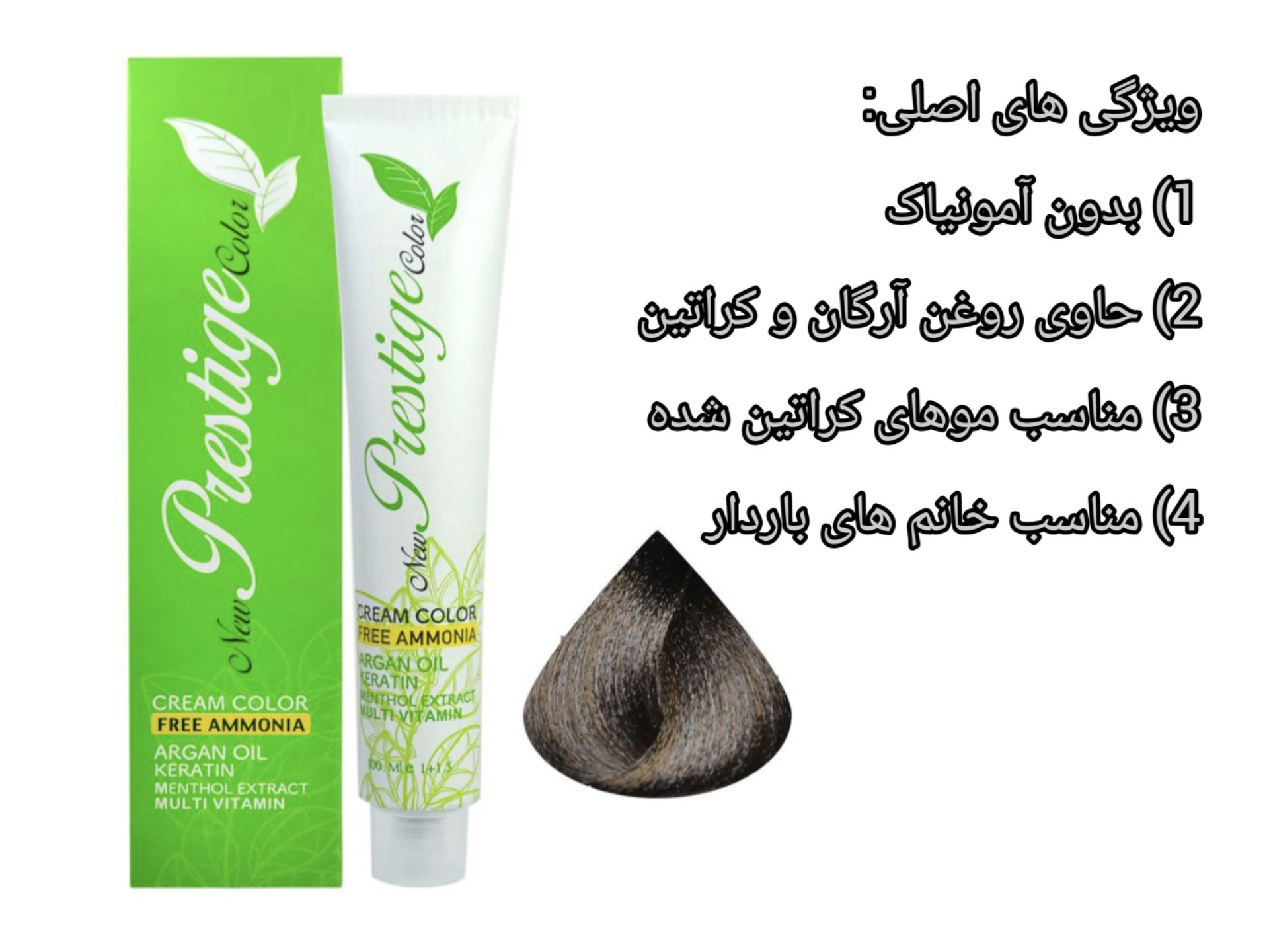 رنگ مو پرستیژ بدون آمونیاک یک گزینه ملایم و کم ضرر برای رنگ کردن مو است که فاقد آمونیاک می باشد. این رنگ مو با حفظ سلامت موها، باعث آسیب کمتر و ایجاد بوی کمتر ناخوشایند هنگام استفاده می شود،همچنین، رنگ پرستیژ بدون آمونیاک جلوه ای طبیعی و درخشان به موها می بخشد و برای افرادی که پوست حساسی دارند و خانم های باردار و یا افرادی که به دنبال رنگ مویی با فرمولاسیون ملایم تر هستند، مناسب است و حجم محصول 100 میلی لیتر می باشد.