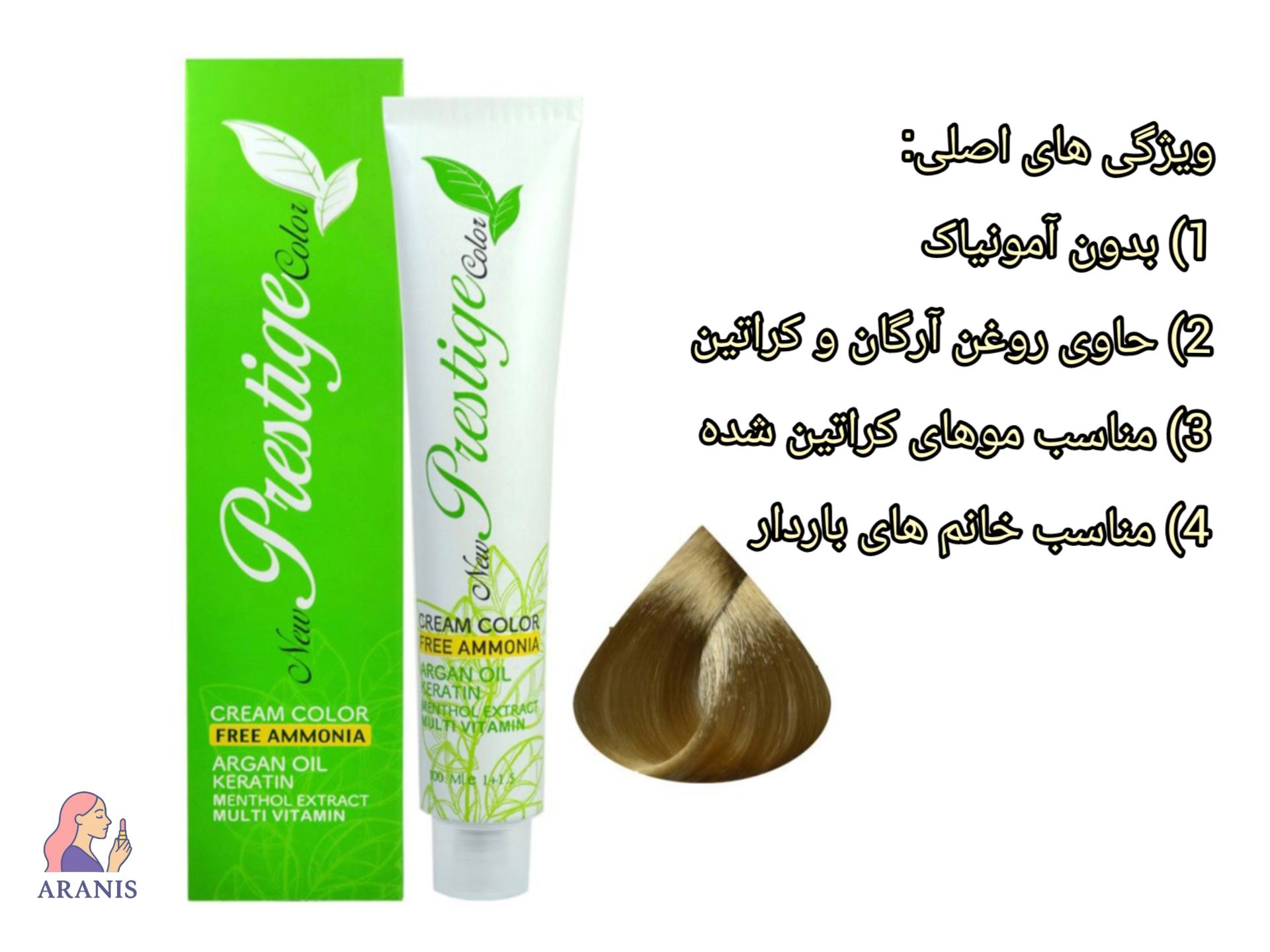رنگ مو پرستیژ بدون آمونیاک یک گزینه ملایم و کم ضرر برای رنگ کردن مو است که فاقد آمونیاک می باشد. این رنگ مو با حفظ سلامت موها، باعث آسیب کمتر و ایجاد بوی کمتر ناخوشایند هنگام استفاده می شود،همچنین، رنگ پرستیژ بدون آمونیاک جلوه ای طبیعی و درخشان به موها می بخشد و برای افرادی که پوست حساسی دارند و خانم های باردار و یا افرادی که به دنبال رنگ مویی با فرمولاسیون ملایم تر هستند، مناسب است و حجم محصول 100 میلی لیتر می باشد.