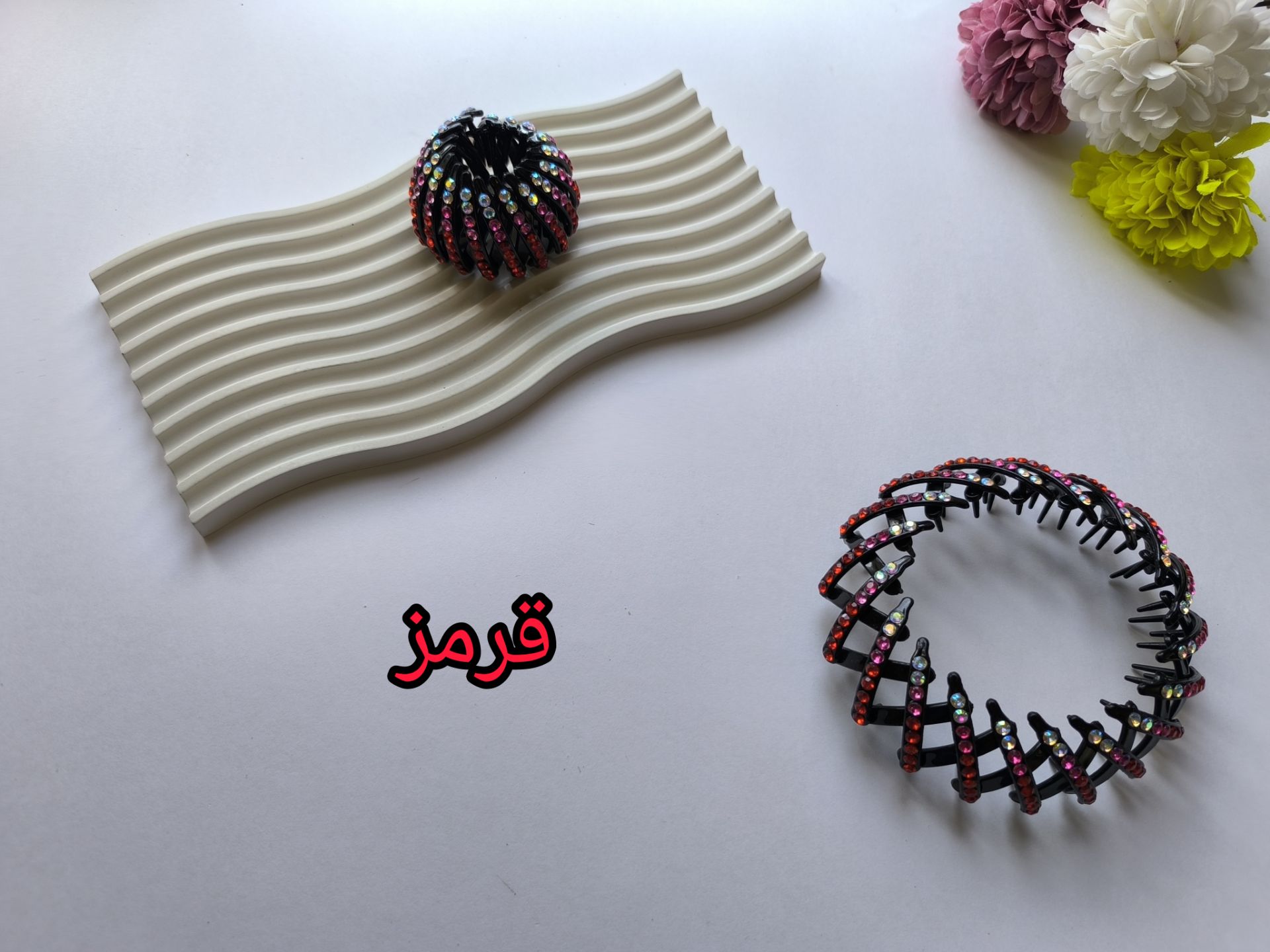 گیره مو گوجه ای نگین دار